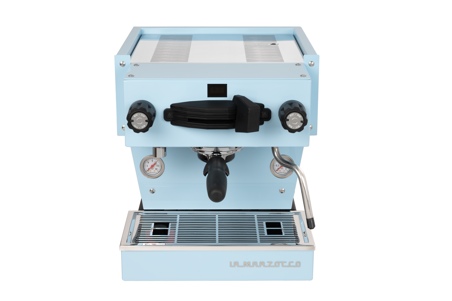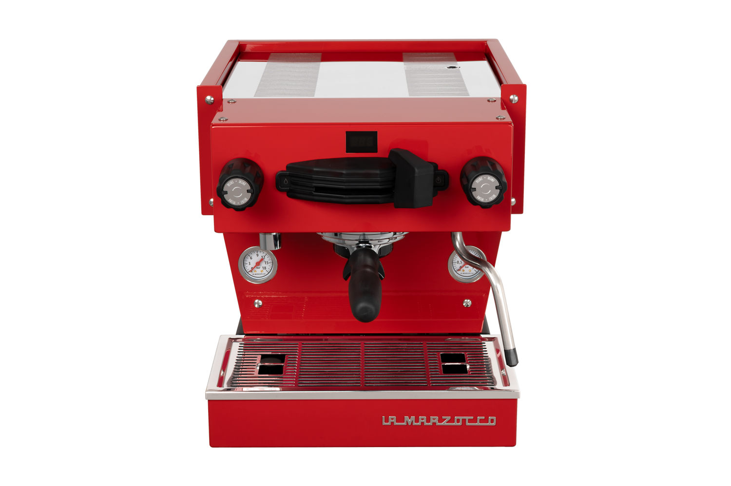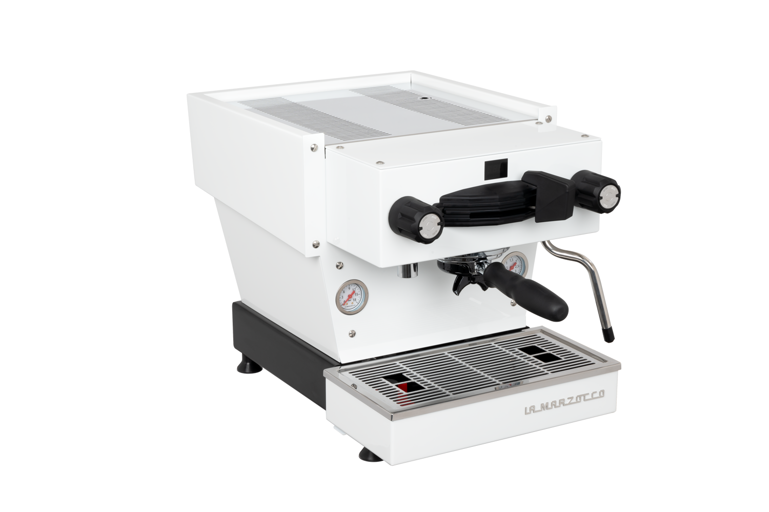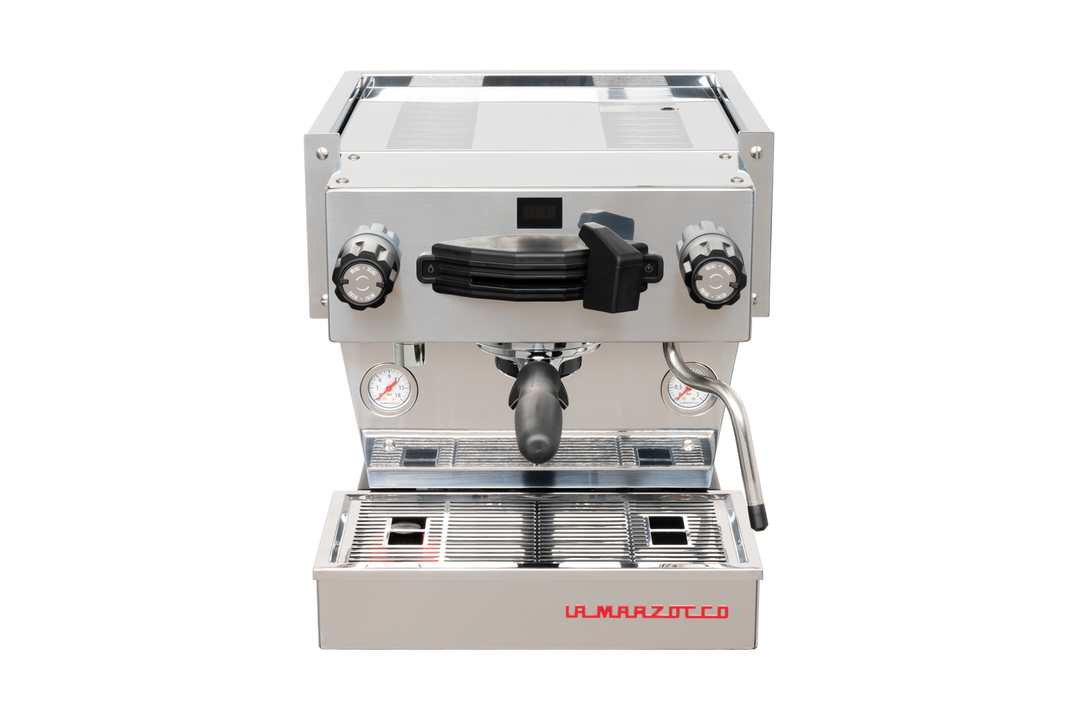 Linea Mini in Black. The Linea Mini is La Marzocco's reimagined espresso icon for the home — turning every espresso moment into an experience. Dual boilers with PID temperature control, a new pre-infusion system with soft saturation and self-cleaning, built-in shot timer, and Brew-by-Weight compatibility with La Marzocco connected scales. Features a commercial-grade group cap, Pro Touch steam wand, and La Marzocco Home App integration.