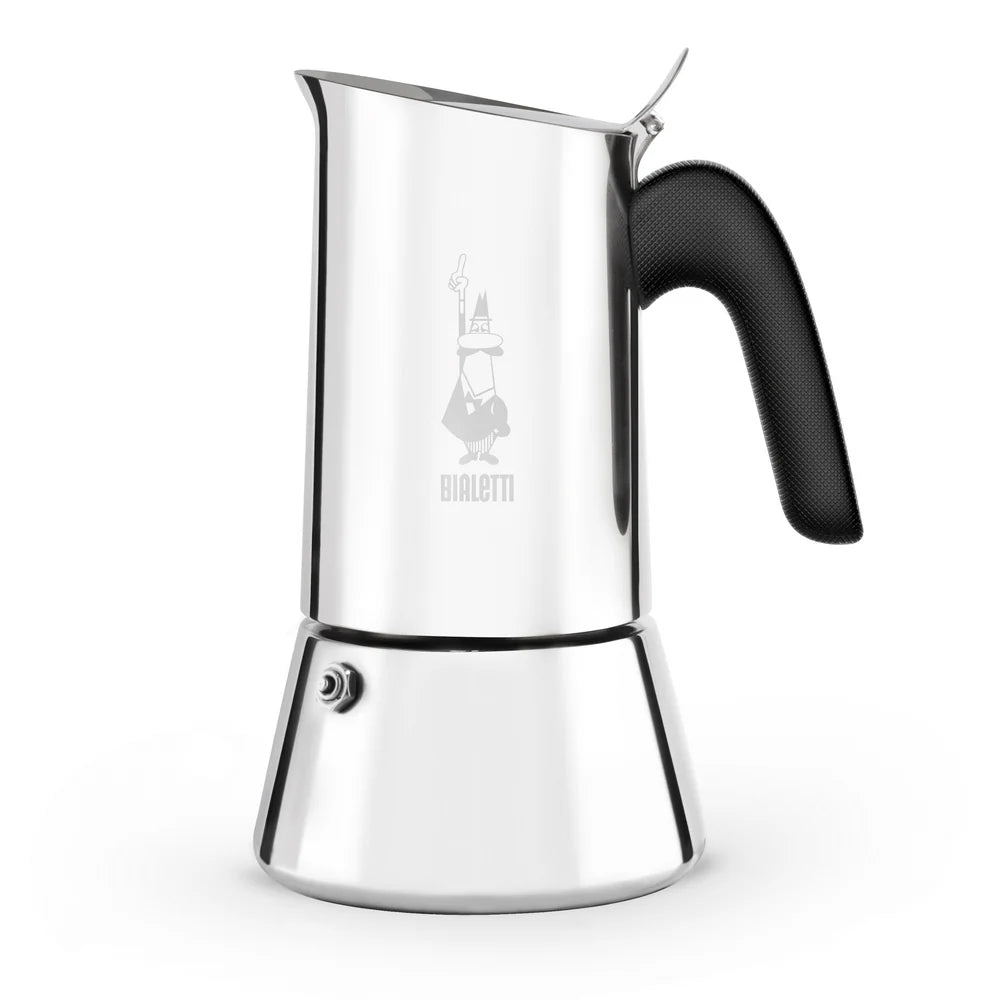 The most popular of our stainless steel stovetops, the Bialetti Venus produces the same authentic Italian espresso, using the same brewing technique, as the original Moka Express. This stovetop espresso pot is made from 18/10 stainless steel and is compatible with all cooktops including induction* (Venus 2 cup size is not suitable for induction cooktops). A functional style with a practical, drip-less pouring spout, it is constructed from food grade 18/10 stainless steel and has an ergonomic, heat-resistant handle with secure anti-slip grip and features Bialetti’s patented safety valve. To produce an authentic espresso in minutes, simply fill the bottom with water to just below the valve, add your favourite espresso ground coffee to the funnel and gently heat on your stovetop. Please note, the cup size refers to an espresso cup which is approximately 30mls.