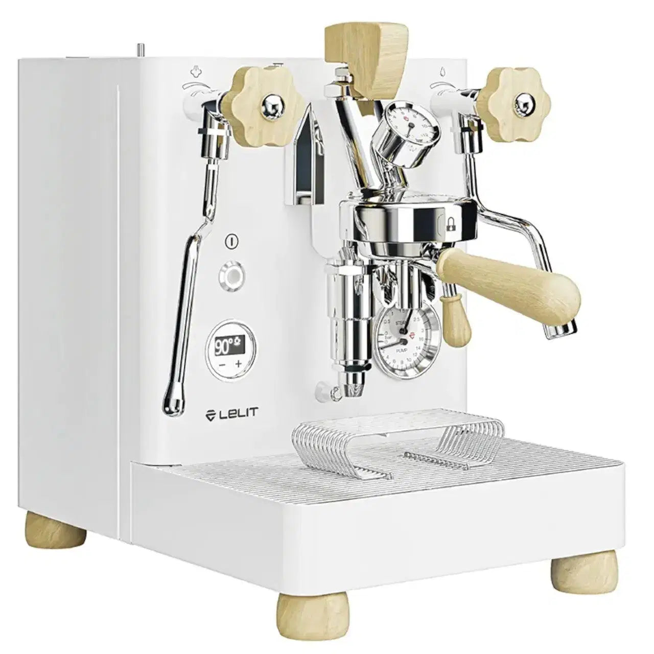Coffee machine with L58E group and manual control of the water flow. The dual boiler ensures excellent thermal stability. Elegance and power come together in this outstanding piece of design. Also available in black and white versions, equipped with a new design drip tray, top-notch maple wood details and colored appliance body with textured finish to give your coffee corner a touch of style.