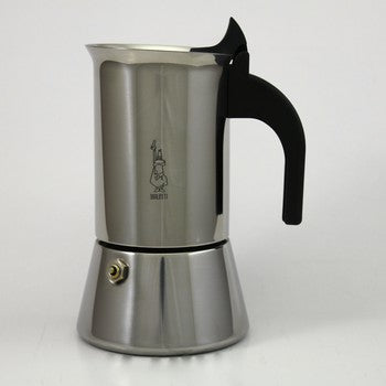 This stovetop espresso pot is made from 18/10 stainless steel and is compatible with all cooktops including induction* (Venus 2 cup size is not suitable for induction cooktops).
