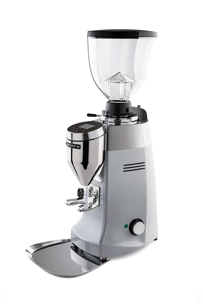 The “Robur” grinder by Mazzer has conical grinding blades and slow speed rotation suitable for high consumption with stepless micrometrical grinding adjustment.