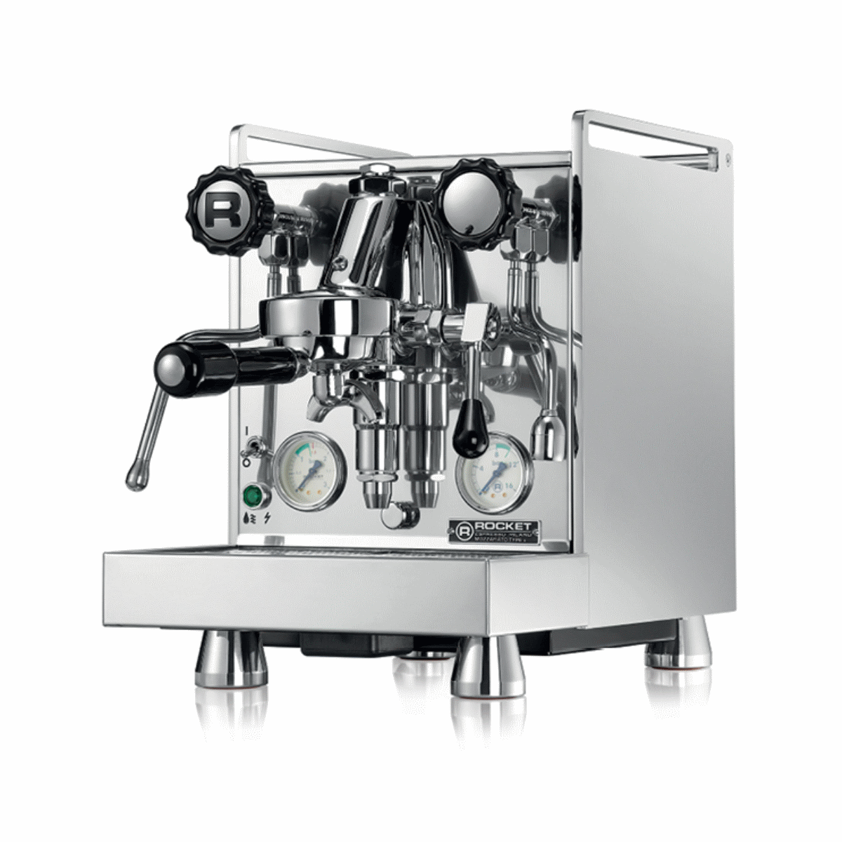 The Rocket Espresso designed boiler features thick lead-free brass end plates and insulation for energy efficiency and enhanced thermal stability. With full commercial grade pressure stats, this machine ensures uncompromising espresso quality.