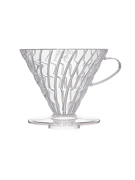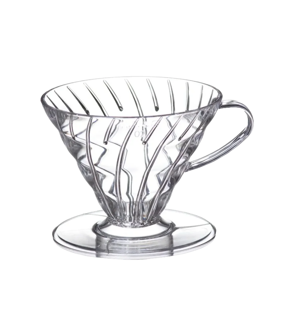 The V60 is iconic and recognized worldwide for its functionality and design. The V60's conical shape allows for deeper layering of coffee grounds, and its spiral ridges and lack of flow restriction allow the user to pour water quickly for a delicate body, or slowly for a heavier flavor. Perfect for cafe or home use!